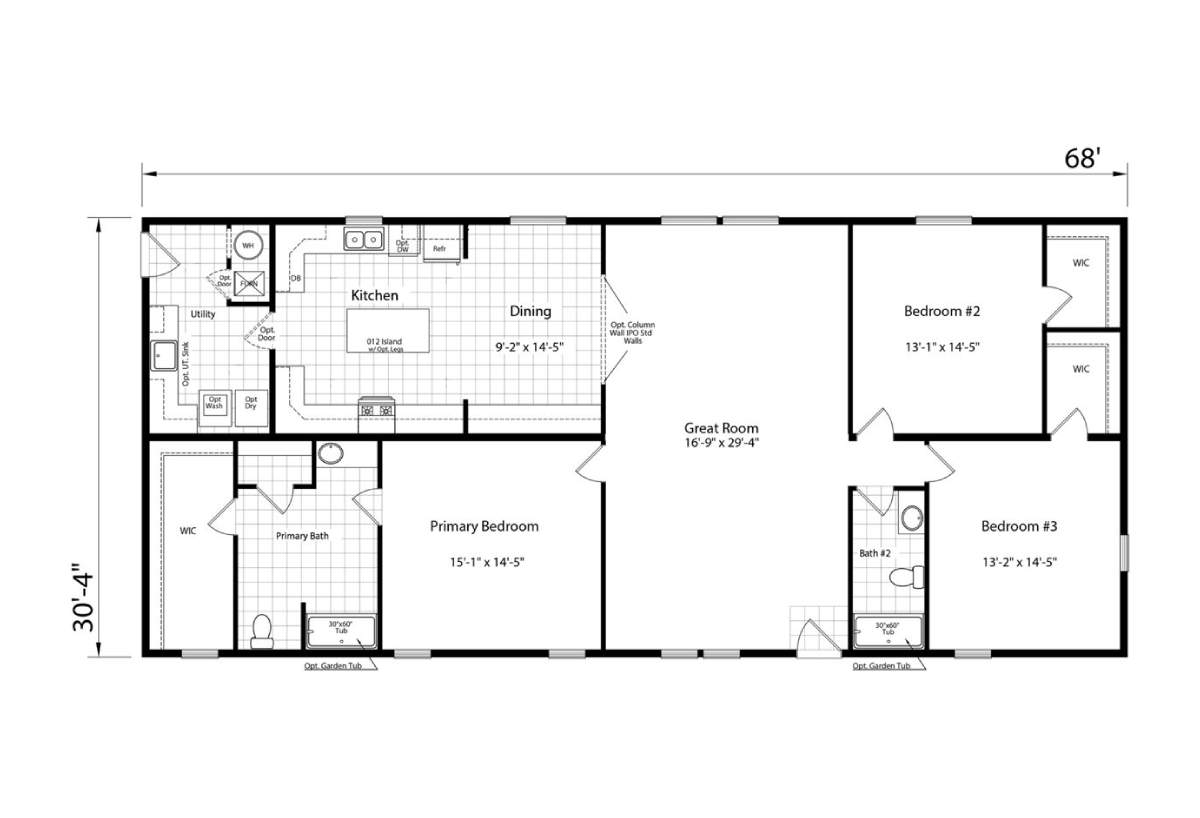 Floor Joists: (14’) 2 x 6 Floor Joist - 16” OC / (16’) 2 x 8 Floor Joist - 16” OC